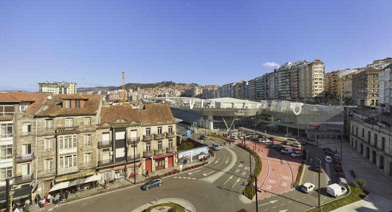The project, located on a coastal but mountainous terrain, resolves a 17-meter difference in elevation between the neighborhood where it is located, on a hillside, and the center of the city of Vigo.