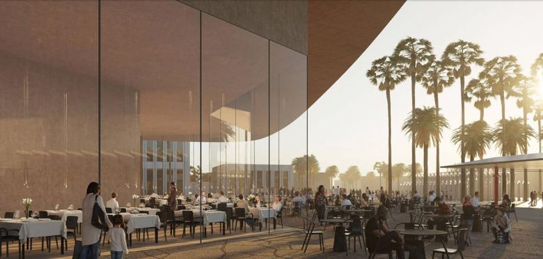​The renderings – similar in appearance to images from April and much better than the ones from August 2016 – do not reveal any major changes to Zumthor's design. The 387,500-square-foot building, which would demolish four of the museum's seven buildings, is made up of seven pavilions that support a large, amoeba-like gallery level that spans Wilshire Boulevard. The roof of the raised gallery level cantilevers to shade the all-glass walls, while the seven pavilions extend above the roof to create taller spaces bathed in light from unexpected places.