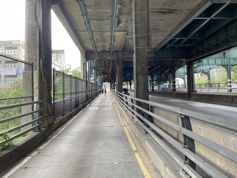 For decades, pedestrians and cyclists crossing the Queensboro Bridge had to jostle for space on a narrow, two-lane space on the north side of the double-decker bridge. Increases in both walking and cycling over the bridge led the city's Department of Transportation to turn a vehicle lane that was only used during only limited hours into a pedestrian path. The DOT opened the pedestrian path on the south side of the bridge in mid-May, at which time the northern section became a dedicated bike lane. Like other East River bridges, when the Queensboro Bridge opened in 1909 with generous pedestrian space: two pedestrian walkways alongside two elevated railway tracks on its upper level. But following the suspension of railway service in 1942, the entire upper roadway was given over to cars a decade later, and the bike/walking path eventually opened in the late 1970s. Before the opening of the pedestrian path last month, the Queensboro Bridge was the only East River bridge without dedicated spaces for cyclists and pedestrians.