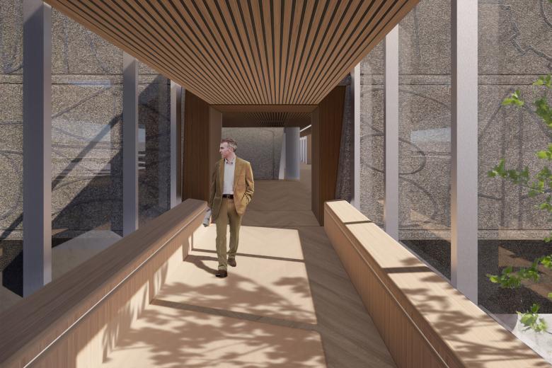 The winning design foresees the creation of a new square and pedestrian routes that weave between the cluster of buildings. Public facilities are distributed across the ground floors, while bridges create safe and dry connections on upper levels. "The large footprints of the buildings allow lower volumes," states Statsbygg. The Team Urbis designers paid attention to the articulation of the street facades for the buildings that will house 5,700 workplaces. The design is based around two urban squares and a new park, with facades featuring setbacks that are supposed to "aid the connection between buildings and their surroundings, as well as allowing sunlight to reach the new urban spaces," according to Team Urbis.