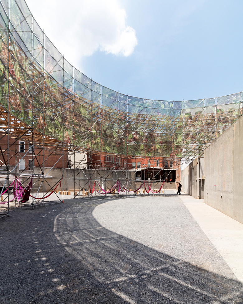 Yet, like most of the previous YAP installations, Pedro & Juana's design is about more than fulfilling functional requirements. In an interview with MoMA Ruiz Galindo and Reuss said they wanted to "change the horizon" by "blocking the view" of the surrounding developments in booming Long Island City. They counter that view with images of the jungle: Mexico transplanted to Queens.