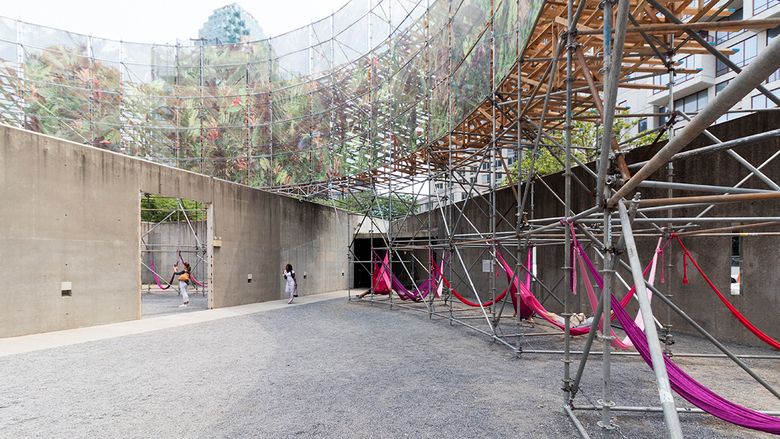 Three months after Pedro & Juana, the firm of Ana Paula Ruiz Galindo and Mecky Reuss, were selected as winners of the 2019 YAP, their installation is all done and open to the public. Designed as a setting for revelers at MoMA PS1's popular Warm Up concert series to cool off, Hórama Rama has shade and water features as well as places to sit.