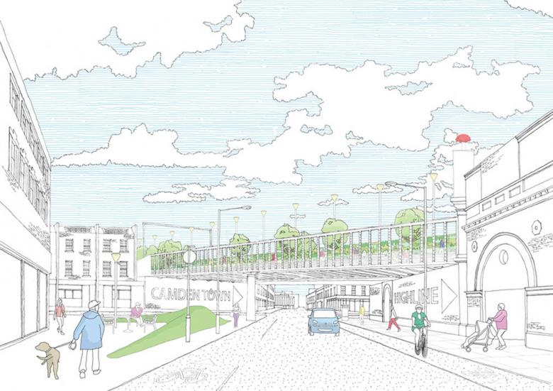 London's version, Camden Highline, is being spearheaded by Camden Town Unlimited, the area's business improvement district. They are working with Network Rail to make the park, which would connect Camden to King's Cross, a reality. The stretch of unused railway, built as part of the North London Line, crosses eight roads and would aim "to reduce overcrowding and journey times on the existing, cycling and pedestrian routes," according to Camden Town Unlimited's Simon Pitkeathley.
