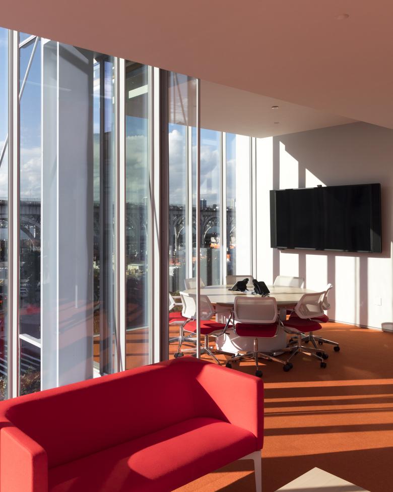 Upstairs, the building's prow is given over to a sun-drenched office space that will probably be occupied by Columbia World Projects, a new initiative "that aims to bring university research systematically out into the world in the form of projects that will have a significant and lasting positive impact on people's lives."