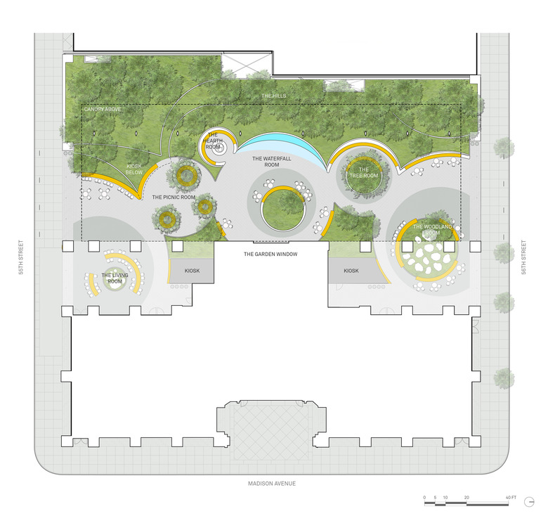 Most notably, the redesigned POPS will include 40 trees – 40 more than its predecessor. Most of them will be located on the west side of the space, where a "layered topography," per Snøhetta, will "[minimize] the impact of existing tower service infrastructure [and provide] a sense of being immersed in the garden."