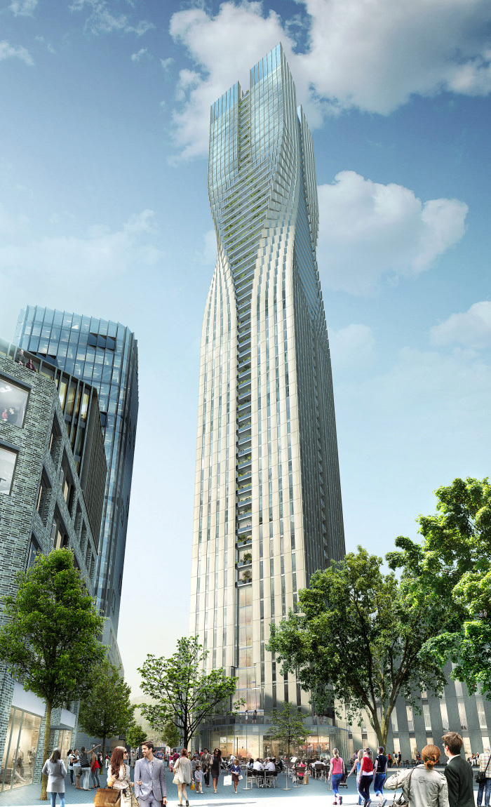 Dubbed "The Pole Star," SOM's scheme with Entasis has been selected over those by Manuelle Gautrand Architects (with local architect Equator), Ian Simpson Architects, Wingårdhs Arkitektkontor, and Zaha Hadid Architects. While the focus is certainly on the 230-meter-high (755 feet) tower, SOM has been working with local architect Entasis, which is responsible for the 200,000 sm (2.1 million sf) masterplan with the surrounding area's low-scale buildings and parks, an integral part of the competition and the jury's commendation.