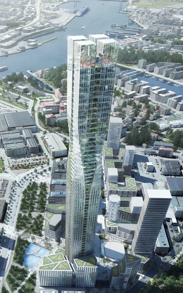 Skidmore, Owings & Merrill and Entasis have bested four finalists in the two-stage competition for a tower in Gothenburg, Sweden, that promises to be the tallest in Scandinavia.