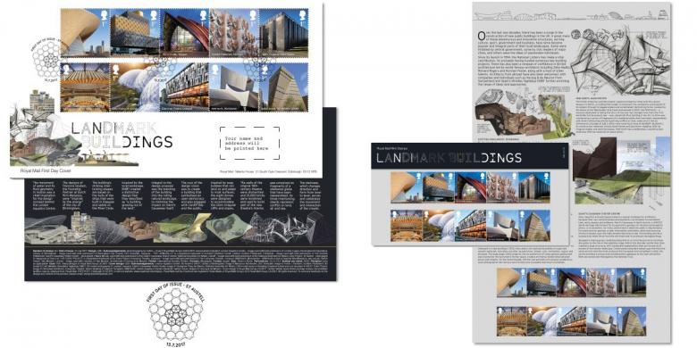 Today the UK's Royal Mail released a special issue of ten stamps that feature "some of the finest public buildings erected in the last 20 years."