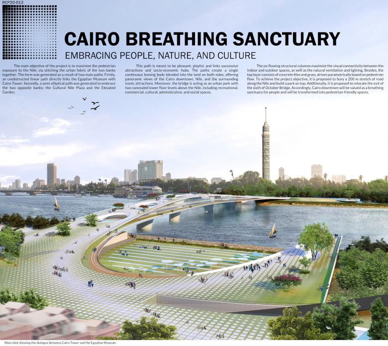 "An annual thematic prize named after the prolific Iraqi architect and academic Dr Rifat Chadirji...the prize this year was themed ‘living pedestrian bridge over the Nile’ and sought proposals for a bridge that connected the Midan Al-Tahrir area (East Bank) to the Al Zamalek area (West Bank) in Cairo."