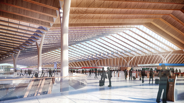 Studio ORD* bested the four other design teams that submitted designs in January 2019 for O'Hare 21. The schemes were available online, where the public could vote on their favorite, and were also on public display at the Chicago Architecture Center and submitted to an evaluation committee. It was the last, comprised of a diverse yet publicly unknown "group of members with experience in terminal construction, airport operations, architecture, planning and budget, and small and local business affairs," per today's press release from the City of Chicago, that determined the winner of the competition.