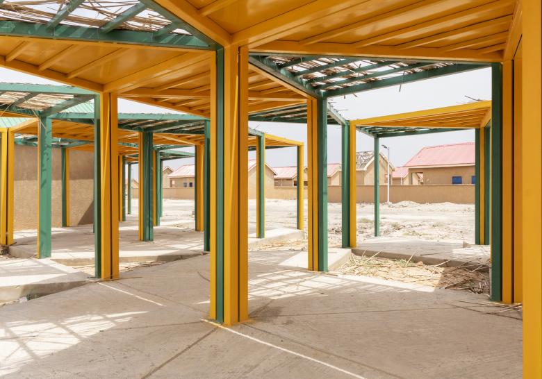 Educated in the UK and with work experience in various architectural firms across Europe and Africa, Tosin Oshinowo (*1980) returned to Lagos in 2009. Inspired by the city’s creative freedom and brimming potential, she played a key role in developing the Nigerian capital into the epicenter of architecture and design that it is today. In 2012, Tosin Oshinowo established cmDesign Atelier, an architectural studio where she functions as the founding principal. She is most famous for her projects Maryland Mall in Lagos and the rebuilding of the Ngarannam village in cooperation with UNDP. In 2015, the Boko Haram conflict caused a destruction of this area in northeast Nigeria, resulting in forced displacement of the population. With her buildings, Tosin Oshinowo aims to reflect a “truly African” style that she calls afro-minimalism.