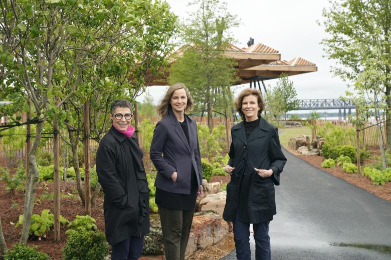 With its experience designing buildings along the Chicago River, among other water-based projects, Jeanne Gang and her Chicago studio were hired by the partnership to develop the Memphis Riverfront Concept for six miles of the city's Mississippi riverfront. Tom Lee Park was just one of five “zones” in the plan Studio Gang delivered in 2017. The concept's overarching principles were to foster civic pride and identity in the majority Black city, restore natural conditions and native ecologies along the river, and better connect the green spaces to the city.
