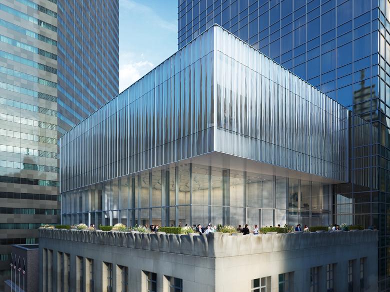The overall transformation of the flagship Tiffany's consists of interior renovations, the reorganization of program spaces, and improving the vertical circulation through the building, but it's the new penthouse that grabs the attention. Described in a statement from OMA New York as "a floating volume over an existing terrace" and "an element of newness at the top," the design features clear glass in its lower half and a slumped glass facade in the upper half. The latter was selected because the slumped glass requires less vertical support and it creates "a mirrored effect that provides privacy from the exterior."