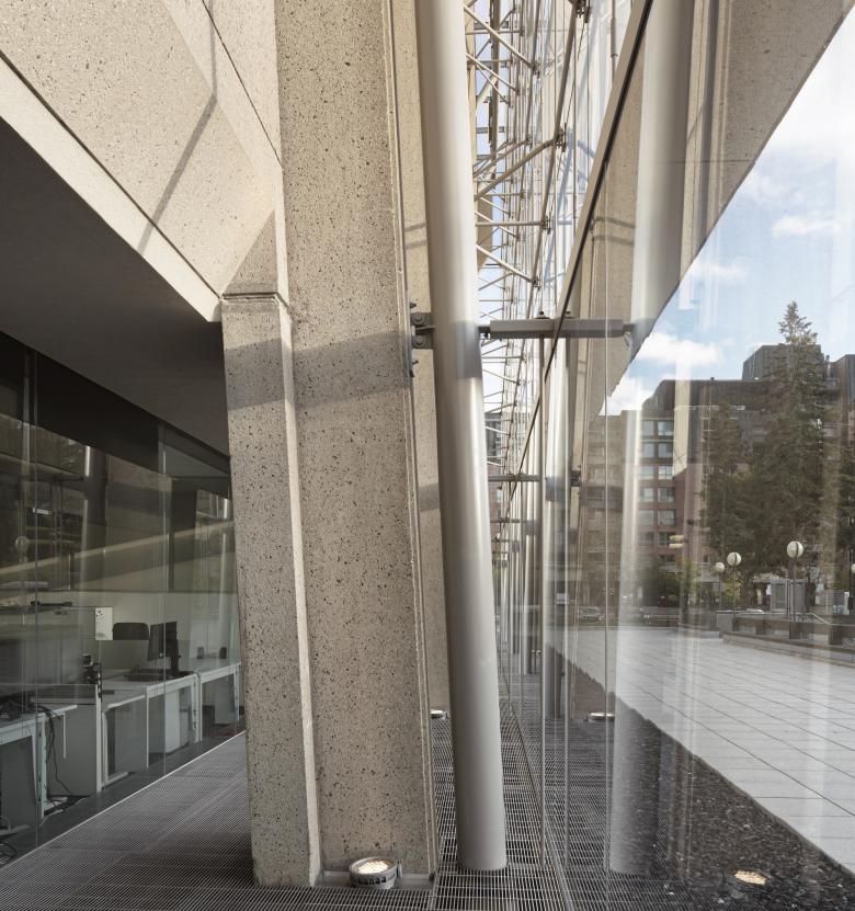 According to the Royal Architectural Institute of Canada (RAIC), this biannual award considers a wide range of innovations: "the research and development and the applied use of new technology; unique adaptation of existing technology; new project delivery methods; new design processes; new details; or the development of new methods related to the construction process." For Lemay, in its collaboration with Atelier 21 on the Grand Théâtre de Québec, "the innovative glass casing is a delicate response to a complex problem." Moisture infiltration had damaged the precast concrete walls of the building designed by Victor Prus in 1970, threatening the historic mural by Jordi Bonet integrated into the concrete. For the RAIC, the most commendable part of the team's solution is the way it "leaves the landmark intact and perfectly visible."