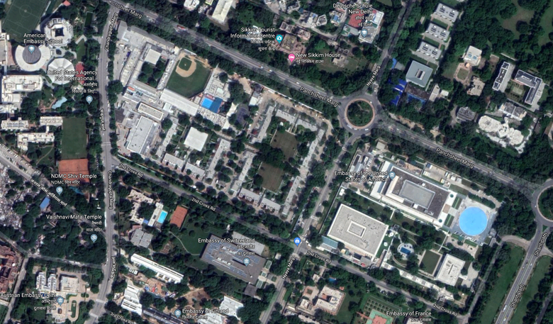 Aerial of the existing U.S. Embassy (Image: Google Maps)