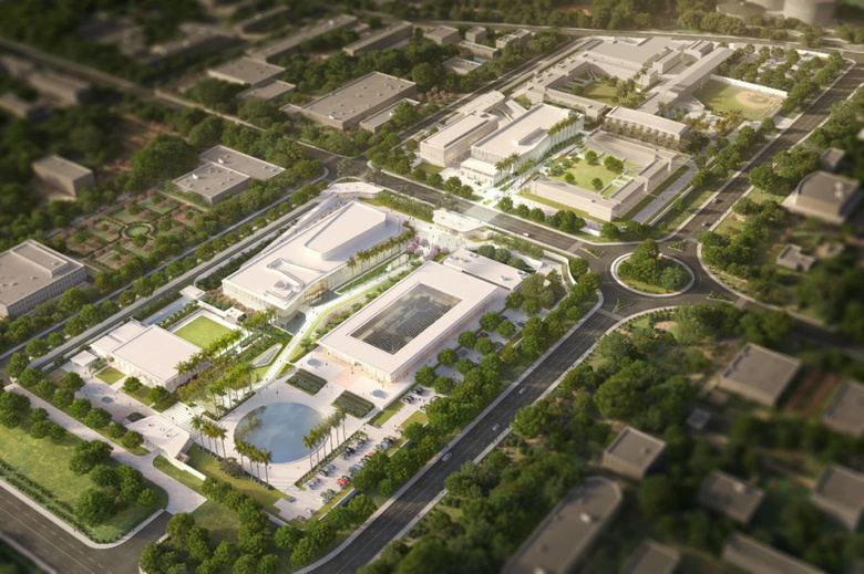The architecture of the new buildings was inspired by India’s "enduring tradition of weaving together architecture and landscape." These features include a series of cast stone screens, canopies, reflecting pools and garden walls that "introduce a resilient, integrated design language that brings the campus into the twenty-first century." Construction of the first phase is expected to start this spring.