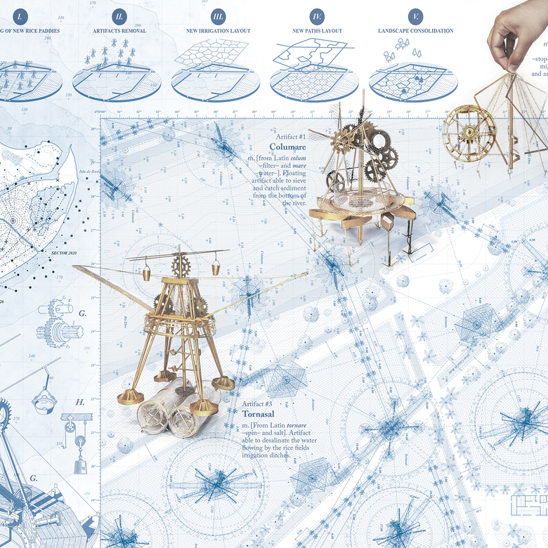Detail of First Prize: "DELTA Raefiguratoria: Treatise on the Ebro Delta restoration" by José Alberto González Martín
