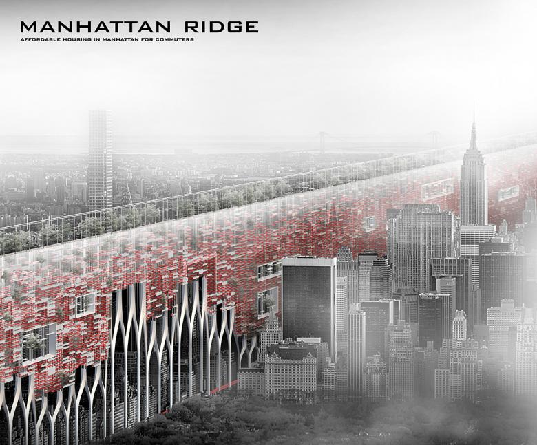 Honorable Mention: "Manhattan Ridge: Affordable Housing for Commuters" by Zhenjia Wang and Xiayi Li from the United States