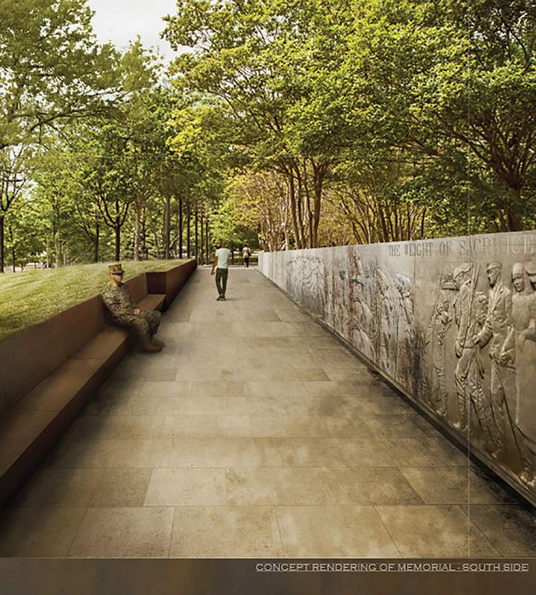 The team led by Weishaar and Howard bested the four other finalists with a design where "each cubic foot of the memorial represents an American soldier lost in the war; 116,516 in all," per their project narrative. Planned for Pershing Park, designed by M. Paul Friedberg and completed in 1981, the winning design preserves the existing WWI Memorial and uses three figurative bronze walls to demarcate a rectangular lawn in the center of the block. Per the Commission, the goal of the competition is "to transform Pershing Park from a park that happens to contain a memorial to a site that is primarily a national World War I memorial, within a revitalized urban park setting with a distinct sense of place that complements the memorial purpose." If all goes according to plan and approvals (by the National Park Service and the National Capital Planning Commission, among others) are gained in a timely fashion, the approximately $30 million memorial should be completed in 2018 to commemorate the 100th anniversary of the end of WWI.