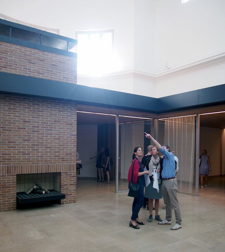 The German Pavilion in the Giardini was built in 1939, but its architecture is more in tune with Albert Speer's stripped classicism than Mies van der Rohe's fluid modernity as expressed in the Barcelona Pavilion ten years earlier. Alex Lehnerer and Savvas Ciriacidis have recreated Sep Ruf's thoroughly modern Chancellor Bungalow from 1964 (used officially until 1999, when the German capitol was moved from Bonn to Berlin), such that the pavilion "swallows it" while also creating a conversation between the two architectures.