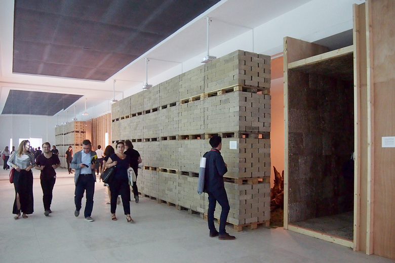 In 2012 Russia wowed visitors with an immersive experience of QR codes lining the walls of their pavilion. A much different type of experience takes place in this Biennale, where actors sit at tradeshow-like kiosks and interact with visitors donning tradeshow badges. The commercialization of architecture is obviously the point of the Strelka Institute's curating, but the pavilion's uncanny resemblance to a trade fair makes for an experience equal parts enlightening, humorous and unsettling. Russia's theatrics earned the pavilion a Special Mention for National Participation.