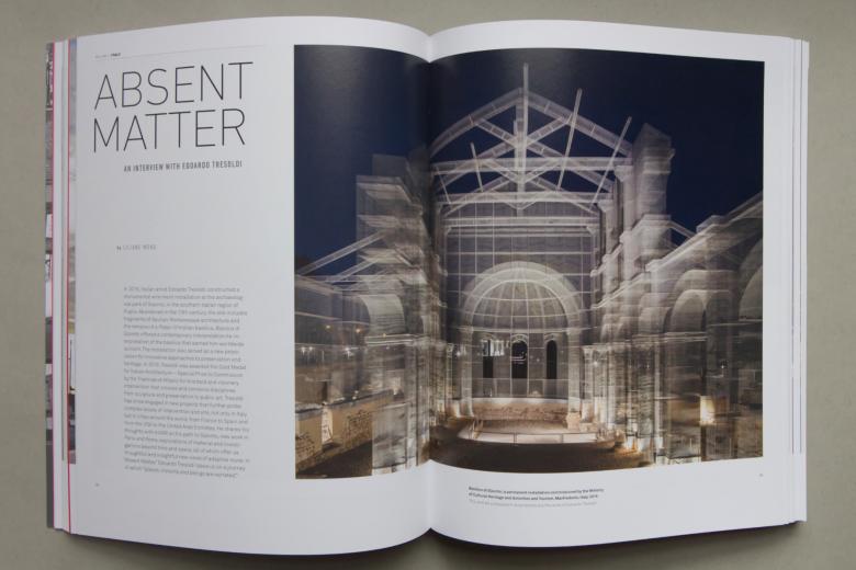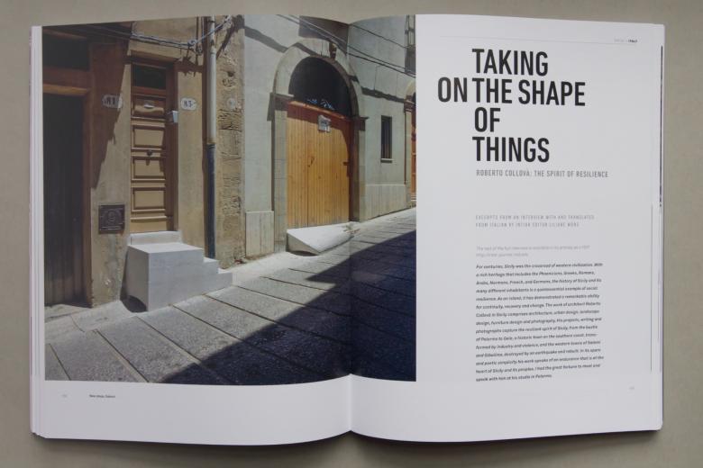The contributions to Int|AR collected in Interventions and Adaptive Reuse are primarily projects on buildings and places and interviews with notable architects and artists. A couple of highlights of the former include Stefano Corbo’s piece, from Volume 09 of Int|AR, on the FRAC Nord-Pas de Calais, where architects Anne Lacaton and Jean-Philippe Vassal “cloned” an old boat warehouse; and a collaborative piece from the same volume on the Rosa Parks House Project, in which artist Ryan Mendoza dismantled the one-time home of the civil rights icon, moved it to Berlin, then delivered it to the WaterFire Arts Center at RISD for a temporary exhibition. Although divergent in many ways, the two projects illustrate the malleability of buildings and the way adaptive reuse projects collage old and new elements into entities with various goals: a stage for art and events in one case and a complicated site of memory in the second. Two standout interviews are those conducted by Liliane Wong with Italian artist Edoardo Tresoldi, whose architectural installations sometimes recall demolished or ruined structures, and with Italian architect Roberto Collovà, whose projects often confront the historical layers of cities on Sicily, where he lives and works. The first, from the tenth volume of Int|AR, echoes the importance of cross-disciplinary contributions and attitudes in interventions and adaptive reuse projects, while the second, from Volume 05 (the first to be published by Birkhäuser, the journal’s current publisher), elevates the practice of preservation in designing for resiliency.