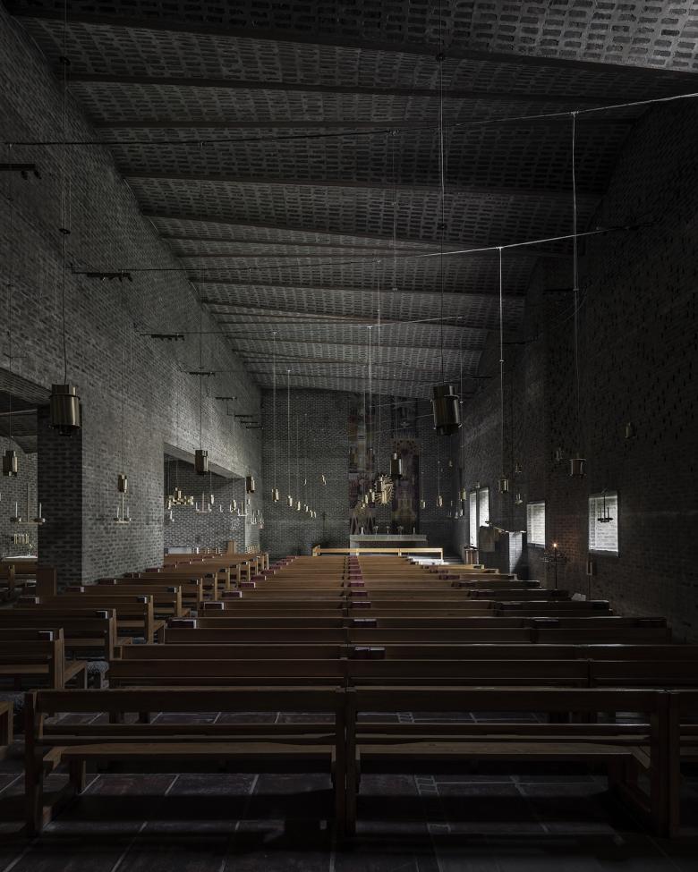 Lewerentz’s best buildings derive their strength from their materiality and sometimes gloomy atmospheres. As simultaneously a craftsman and a thinker, he struggled with a construction industry that paid little attention to details and was more interested in efficiency. Lewerentz, on the other hand, was looking for subtle transitions between landscape and building, outside and inside, or wall and roof. His architecture was quiet, never polemical or political, with a focus on sensorial and spatial effects. Lewerentz was obsessed with his work, his ideas could change radically, and he always worked on several solutions in parallel. It was not easy for Lewerentz to specify his ideas; the designs were the result of his long and lonely struggle at the drawing table, the constant revisions making colleagues nervous. Only in this way was he able to work on all scales, cultivate his love of detail, and overcome typologies and clichés. Every project was charged with the same curiosity.