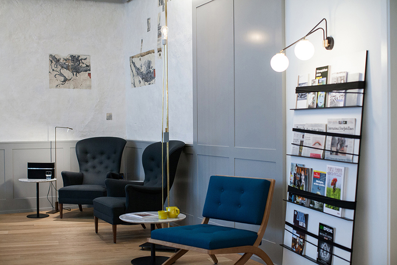 Karsten Schmidt: Twenty years ago I founded my architectural office IDA14, and since then my passion has been to work on the architectue and design of hospitality projects. In these years I was in charge of the interior design for more than fifteen hotels, some of them traditional hotels in historic buildings. The challenge with hotels in historical buildings is in finding the fine balance between modern aesthetics, warm living spaces, and the history of the building. This hotel we are in demonstrates how historic and protected details can be combined with timeless, eclectic design and modern technical features.