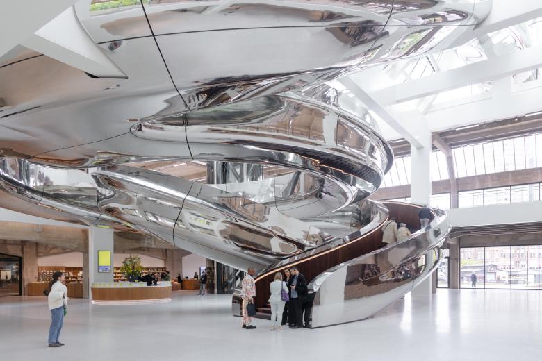 MY: That was my first reaction, which was about expressing movement. It is a museum about immigration, which involves time and movement. Also, when you look at the existing building, which is heavy and made of concrete, I realized that it needs to be opened up through the roof to allow natural light to enter. The idea was to celebrate people’s movement in the space. So, to bring the movement there was my first reaction. And, of course, we did many versions of the tornado. But they all looked like a tornado. [Laughs] I wanted to bring people to the roof and to let them see the city.