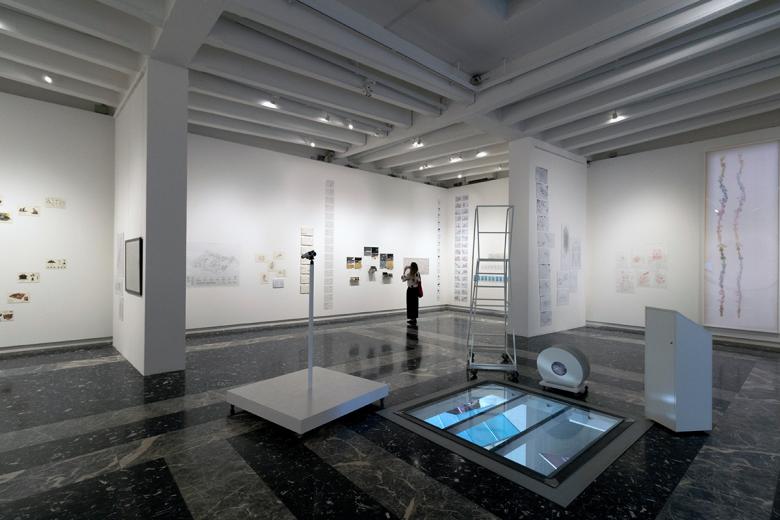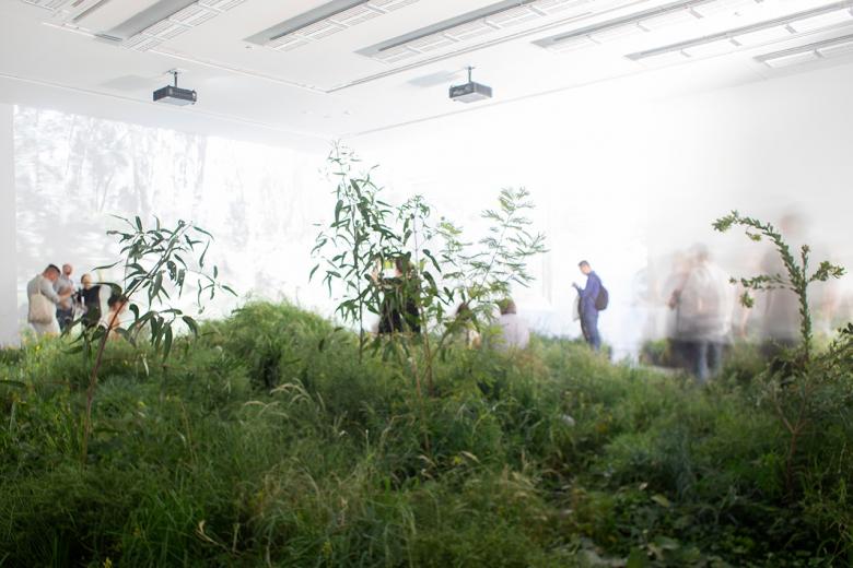 In 2016 Australia filled its then new pavilion, designed by Denton Corker Marshall, with a pool. This year it's grasslands brought all the way from Australia. Shipped as seeds and planted in Venice a full eight months before the opening of the Biennale, the potted plants are made up of more than 60 species pulled from the Victorian Western Plains Grasslands — the most threatened plant community in Australia. That they can grow — and thrive, based on appearances during the Vernissage — beneath an artificial skylight made of LED lights means their preservation in Australia depends upon other factors: politics, development, agriculture, and public knowledge about landscape preservation. The plants and skylight are accompanied by videos of architectural projects aligned with the idea of "repair"; they are projected on the walls when the LEDs are off, turning the grassland into a frame for observing the built and unbuilt proposals set in different parts of Australia.