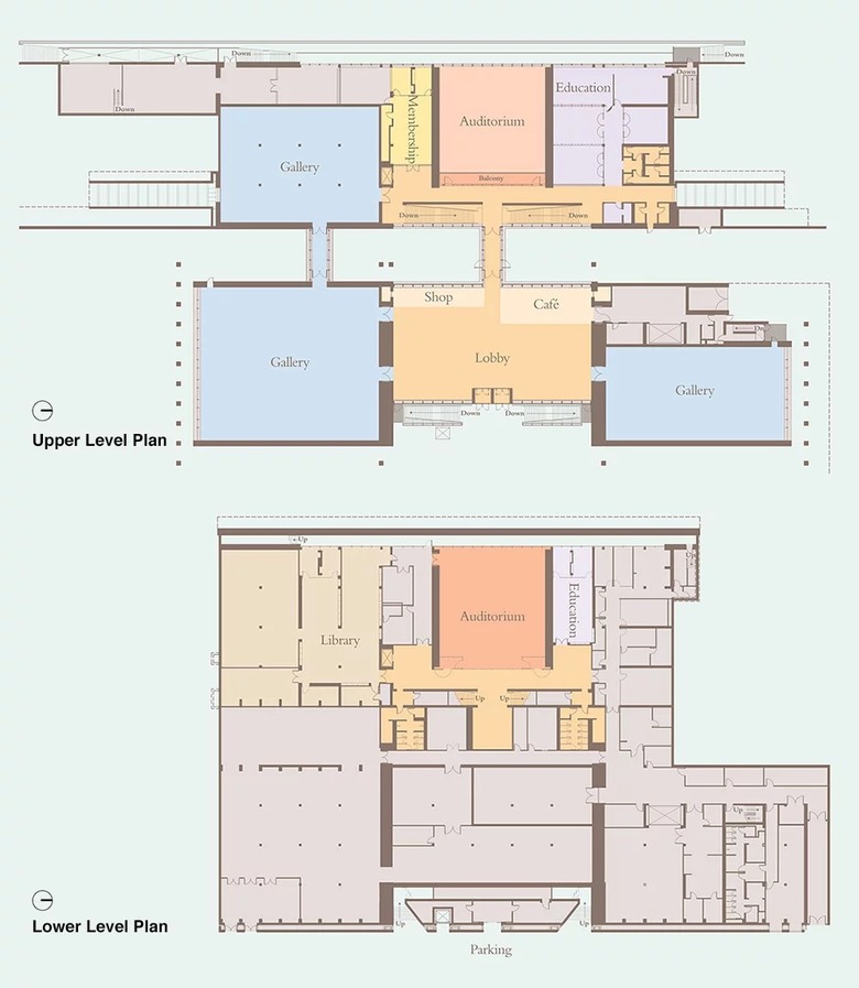 So 20 years after it dropped the Giurgola plan, the Kimbell tried again, this time with Piano. The first major decision was to locate the addition due west of the Kahn Building, on a lawn that had served for years as the Kimbell’s front yard and a buffer between it and the Amon Carter Museum (designed by Philip Johnson and itself an underappreciated gem). The Carter might have been worried about the Kimbell encroaching on its views. In fact, Piano kept his building low and covered much of it in grass; it is practically invisible from the Carter’s front steps. And yet it shifts the center of gravity of the city’s museum district (which also contains Tadao Ando’s Modern Art Museum of Fort Worth) westward, forging valuable connections to the Carter.
