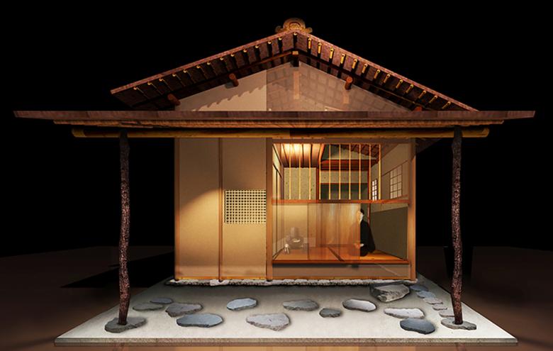 The exhibition has nine sections that trace the lineage of architecture and explore the genealogical elements that are still vital yet "undermined by modernism and concealed beneath." Featuring materials, models, and interactive exhibits, the show has three major highlights. First is a full-scale reproduction of the Tai-an, a Cha-chitsu (tea house) by Sen no Rikyu, a famous tea master from the 16th century. The tea room, only two tatami mats in size, is seen as a prime example of Wabi aesthetics. From the tiny interior of the full-scale replica of the original in Kyoto’s Myoki-an temple, visitors can gaze over the skyline of modern Tokyo.