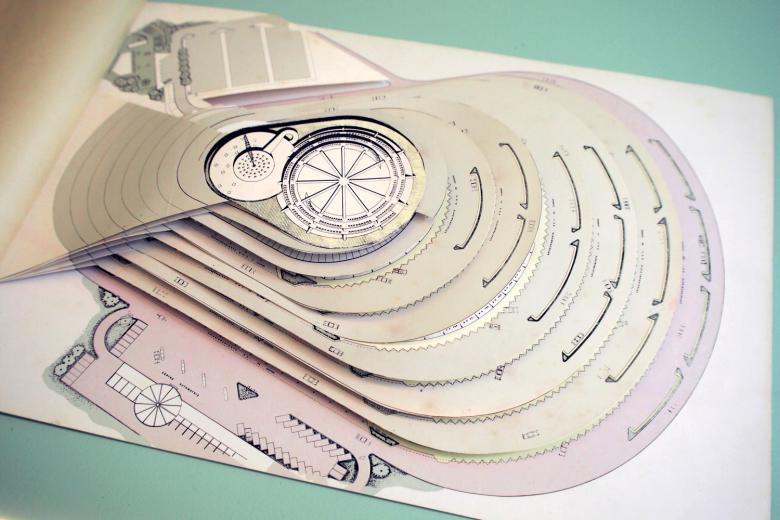 Pop-up page from sales brochure on El Helicoide de la Roca Tarpeya, ca. 1958 (Photo: John Hill/World-Architects)
