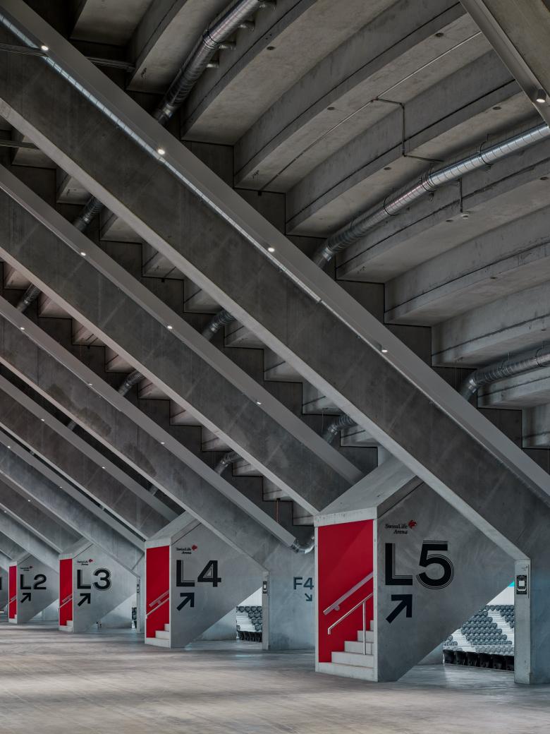 The fluting of the prefab panels is a leitmotif the office has carried through from project to project: the Europaallee Building near Zurich HB has them, as does the St Jakob Foundation in Zurich West. In creating their largest project to date, Caruso St John wrapped the venue in a “theater curtain” and put a raised “stage house” in the middle. The Zurich Lions and their fans probably don’t care about this parti nor any nods to 19th-century architectural theory — they are just happy to play in their very own stadium for the first time.