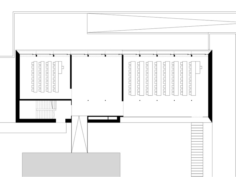 Dietrich | Untertrifaller Architekten: Salzburg University of Applied Sciences Kuchl Campus Extension. Ground floor plan. (Drawing: Dietrich | Untertrifaller Architekten)