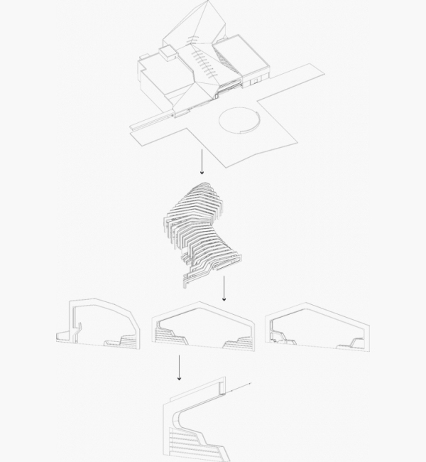 Helen & Hard: Vennesla Library. Exploded axonometric of building structure. (Drawing: Helen & Hard)
