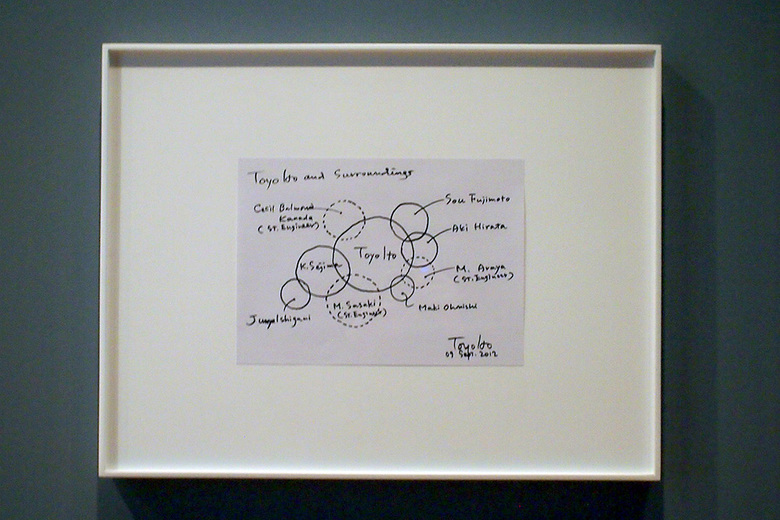 The 2012 sketch by Ito, which depicts the overlapping of the architects in the exhibition, with Ito at the center.