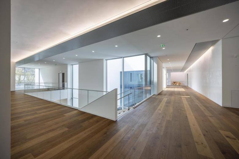 Maki's precisely cut architecture is clear, transparent, light, and bright. This lucid architecture benefits decisively from the exquisite quality of the materials, the attention to detail, and the exceptional perfection of the construction work. This is thanks to the client, Reinhard Ernst, whose life's work was precision construction and who critically monitored the building work almost daily and made every decision himself.
