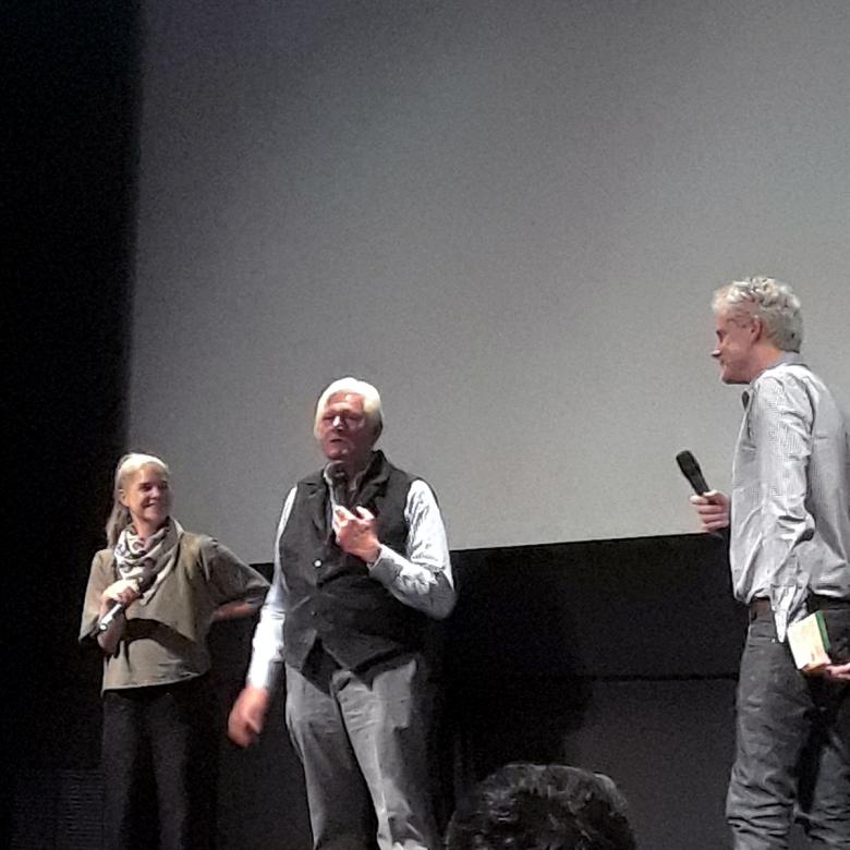 Piet Oudolf (center) and director Thomas Piper (right) at a screening of "Five Seasons" in New York City in June (Photo: John Hill/World-Architects)