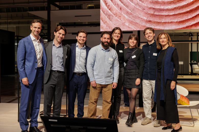 Isabel Zumtobel (right) and Raphael Petri (left) with the winners of the EUmies Awards Young Talent 2025 (Photo: Nina Bröll © Zumtobel Group)