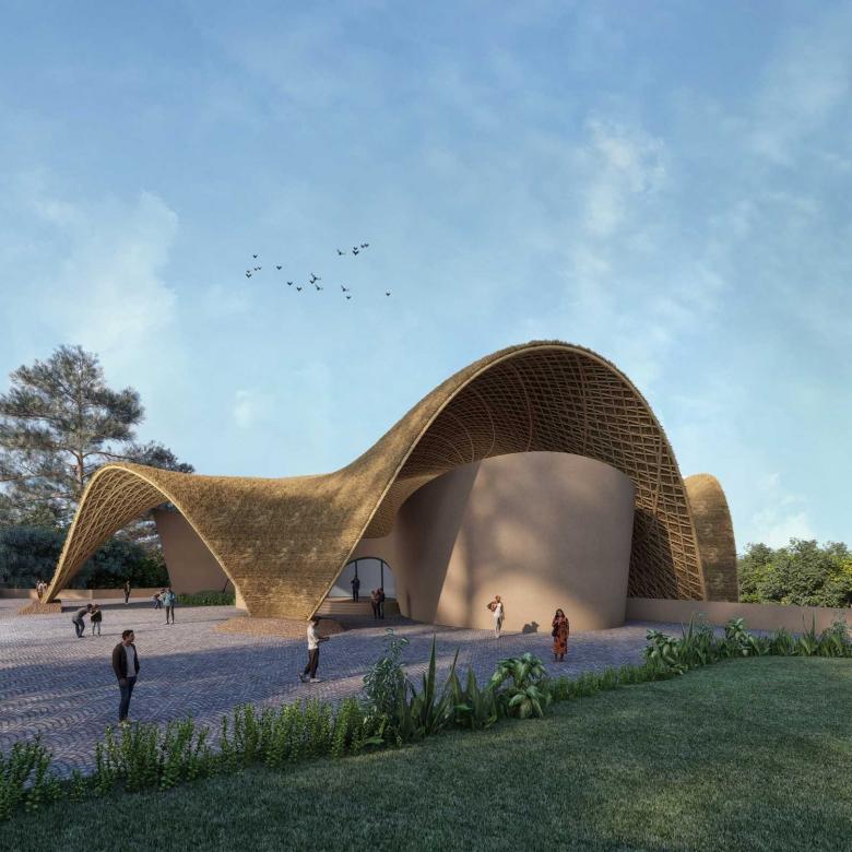 SP: Yeah, it's totally different. There, we are using earth bricks, stabilized earth made from the soil of that site itself. Even the bricks are not coming from outside the site. And we are doing a bamboo roof. We are hardly using any steel at all, zero concrete.
