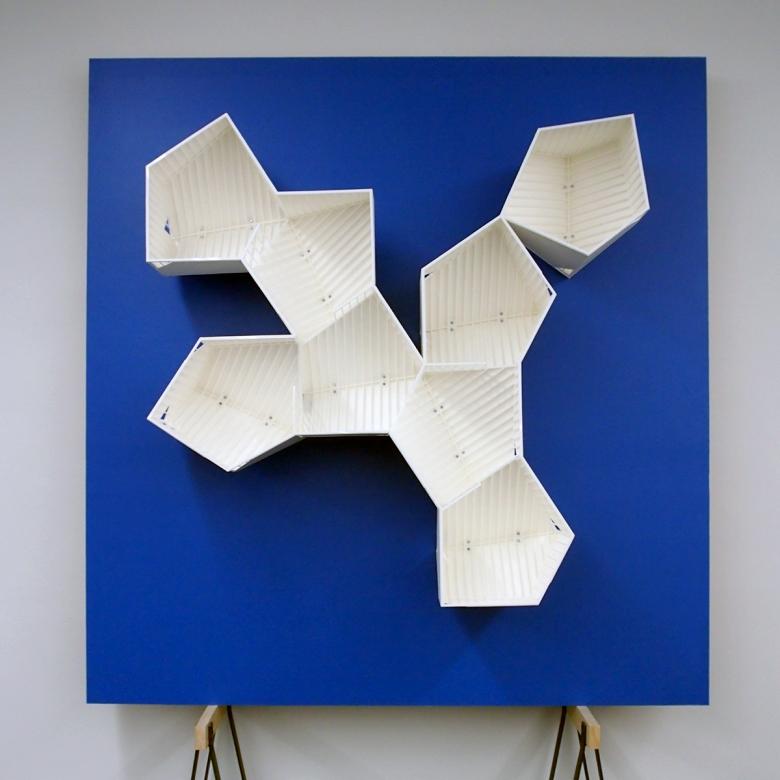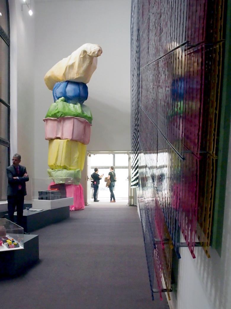 #22 – Crossover: Piece on wall by Zago Architecture and model by Pascal Flammer. Color is a main ingredient in these two striking and strikingly different pieces squeezed into the passage connecting the east and west sides of the second floor.