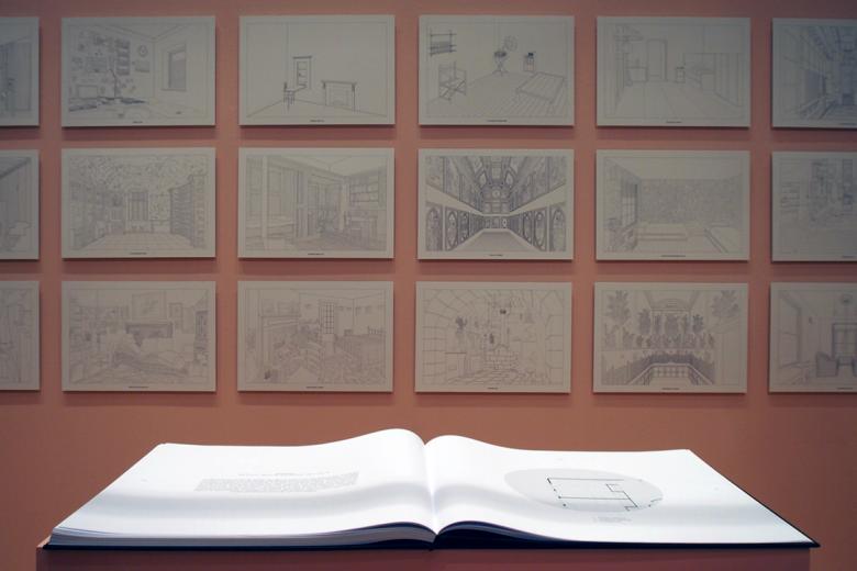 #26 – Exhibit Hall: "Rooms" by Dogma. Alongside the chapel study is a grid of drawings that explore the room as the fundamental means of making space. Precedents range from antiquity to today.