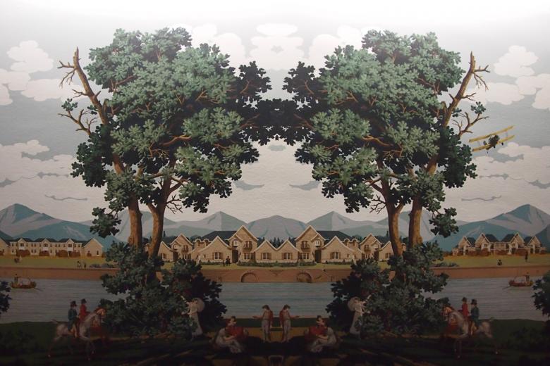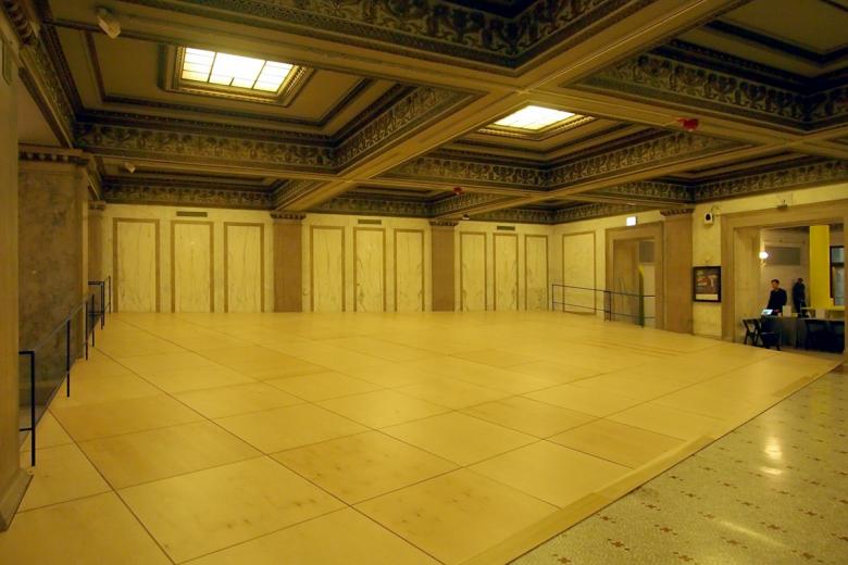 Even though the four thematic strands permeate the Cultural Center's spaces, the building – completed in 1897 as the city's main public library and transformed to a cultural center in 1991 after the Postmodern Harold Washington Library opened – is not a static container; it influences the contents, or at least their placement. The Michigan Avenue Galleries on the first floor, for instance, have a lower ceiling height than the floors above, so they are home to models and drawings of an intimate size and scale. Accordingly, Johnston and Lee envisioned these galleries as a labyrinth that requires visitors to wind their way through the compact spaces. The duo also took care with the corridors on the west side of the building, the odd spaces that were created in the years since the building gained its current function. And with the grandeur of the rooms increasing as one ascends the building, there is a progression in the exhibition that culminates in Vertical City, one of the few elements of the Biennial at the Cultural Center that explicity addresses its host city.