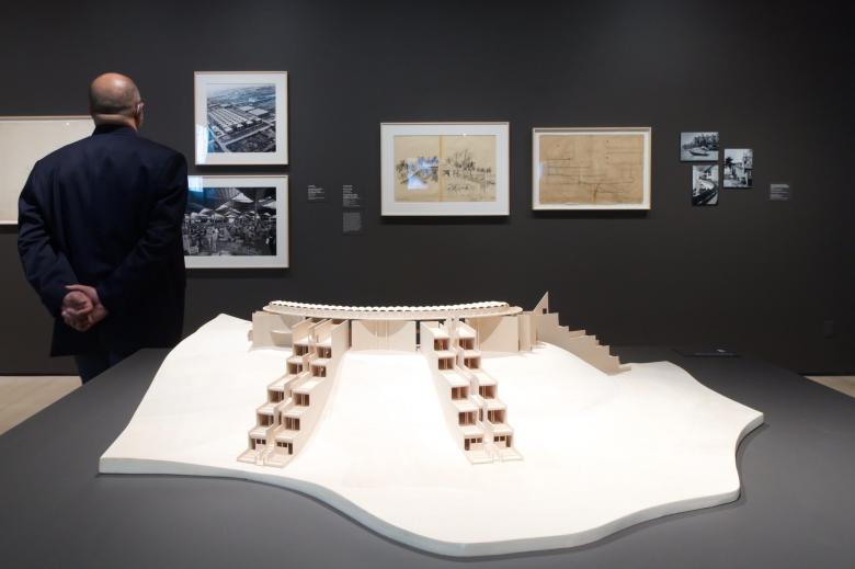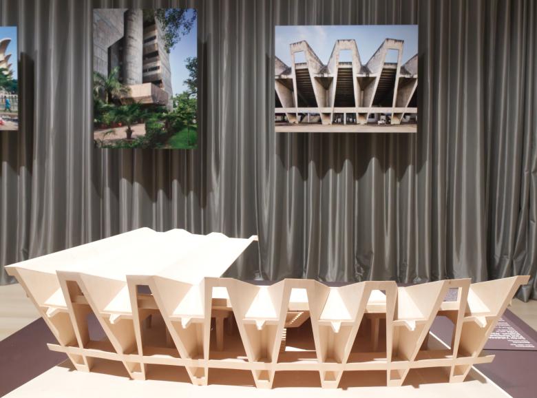 The buildings and projects in The Project of Independence are presented in six typological sections: "New Cities" (urban planning); "Templates for Living" (affordable housing); "Industry and Infrastructure" (self-explanatory, but also including tourism); "Political Spaces" (governmental buildings, monuments, expo pavilions); "Landscapes of Education" (school campuses); and "Institution-Building" (cultural centers, stadiums, places of worship). This recap of the exhibition looks at the half-dozen buildings represented in newly commissioned wooden models built for the exhibition by students from New York's the Cooper Union. Although the number of models aligns with the number of exhibition sections, there is no direct correlation between them, with three models in "Industry and Infrastructure," for instance, but none in "New Cities" nor "Templates for Living." Nevertheless, these six projects, presented below in chronological order by the buildings' dates of completion, give a good sense of the overall exhibition, which people are encouraged to see before it closes on July 2, 2022.