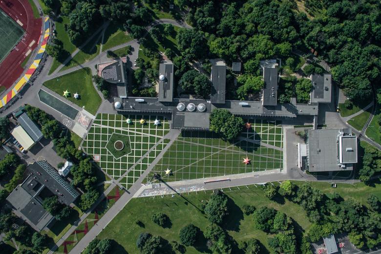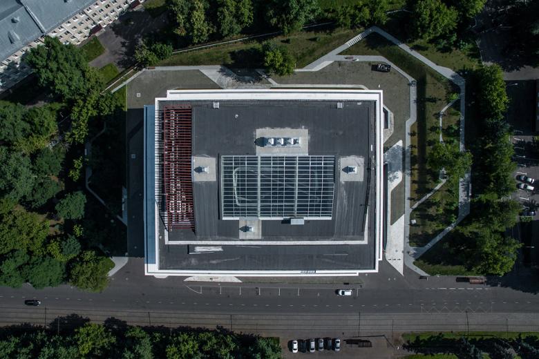 Denis Esakov "lays architecture bare," showing things which we do not usually see – roofs, domes, utilities systems, and distinctive layout features – from a bird’s-eye position. His drone with built-in camera makes it possible to avoid the perspectival distortion which is often characteristic of pho- tographs taken from the ground. At the same time, we see how, when photographed from above, structures become two-dimensional. The photograph underlines this flatness and ornamentality, revealing a new urban aesthetic or showing up flaws in the urban environment. Architectural aerial photography enables us not just to see buildings from above, but also to understand how these buildings fit into the urban landscape or organize the latter.
