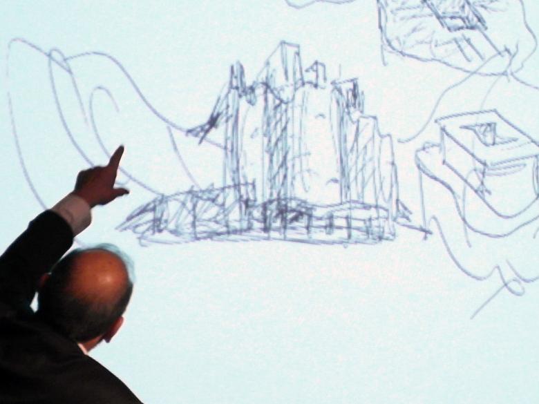 Alvaro Siza's presenting his Foundation Iberê Camargo (Porto Alegre, Brazil) at MoMA in June 2013. (Photo: John Hill/World-Architects)