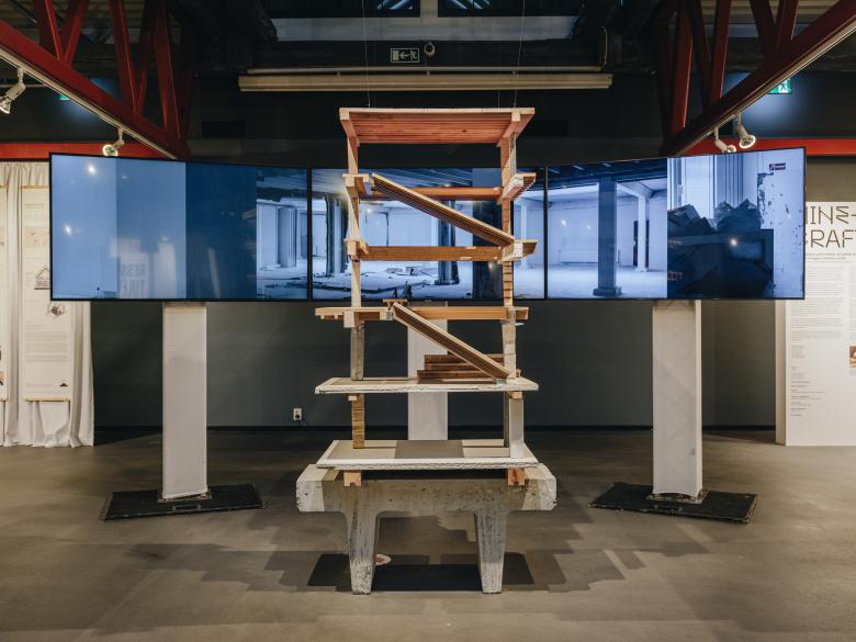 How does the exhibition itself — a physical construction on display for two months — address resources and follow the idea of creative architectural circularity?