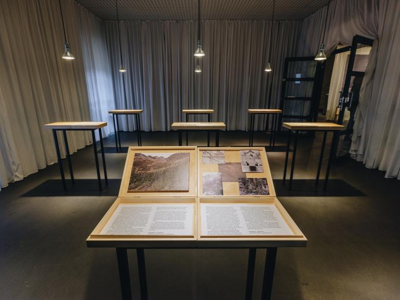 The exhibition continues with a reading room and other installations on the mezzanine. (Photo: Tonu Tunnel)