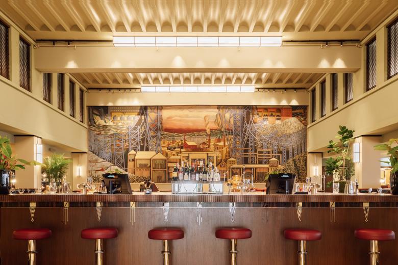For its new use as a classy hotel, LPO Architects were asked to collaborate with GRECODECO, an interior design firm founded in 2017 by Adam Greco, who designed the Ned Hotel in London with partner Alice Lund. The Ned, a retro hotel housed in the former Midland Bank headquarters designed by Sir Edwin Lutyens in 1924, convinced the clients they were the right choice. Greco wants to “bring spaces, sites, and concepts to life by layering in references from an array of periods, both real and imagined. The idea is not to recreate the past in a rigid, historically accurate way, but to offer the guest a romantically immersive experience as if in a nostalgic memory, even if this memory could never have existed.” At Sommerrogata 1, GRECODECO turned the former utility company building into a powerhouse of trendy design. Where the preservationists demanded it, they restored the 1930s splendor, but where the client demanded a “themed design,” they simply imagined a retro-Deco style of “Sinatra, Burlesque and tap dance,” as the hotel manager, Simon, put it.